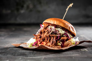Es gibt zartes, langsam gegartes Fleisch, saftig und würzig im Bun – das müsst ihr unbedingt probieren! Es gibt natürlich auch eine vegetarische Variante!